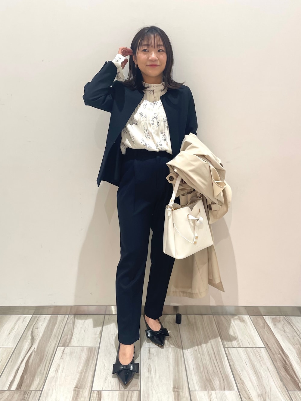nanamiのスラックス「【セットアップ対応】テーパードパンツ【洗える】」を使ったコーディネート