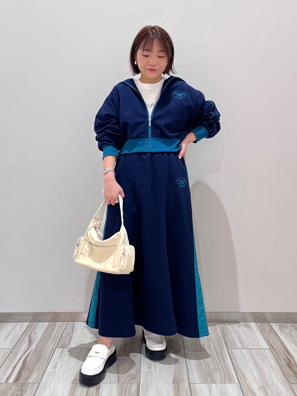 converseのセットアップ💚 スニーカーではなく ローファーでキレイめに✨ 大人の方でも挑戦しやすい ネイビーカラーおすすめです☺️