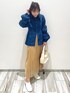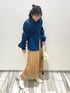 デニムシャツ×プリーツスカート キレイめコーデ🧡✨ 小物はホワイト系でまとめて 春らしく爽やかに🫶