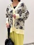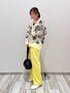 ラメ入り花柄カーディガン💐 リネンライクのワイドパンツ キレイめカジュアルコーデ💛 ベージュ×イエローでまとまりのあるスタイリングに✨ バッグはブラックにしてメリハリを!