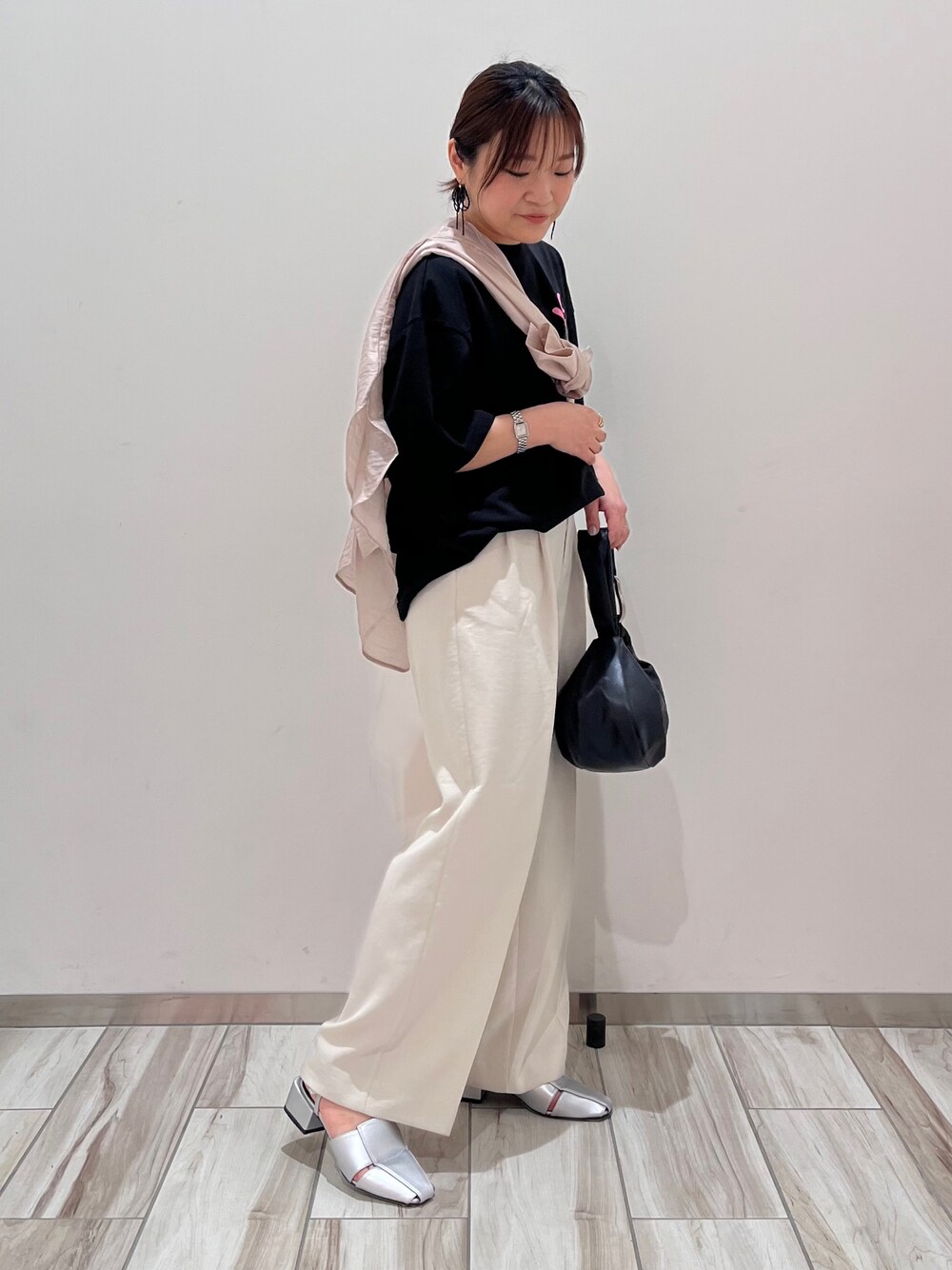 PUMA別注アイテム×美easyワイドパンツ PUMAの別注アイテムのTシャツと美easyリネンライクワイドパンツのコーディネート💕 シアーシャツをアクセントにしました! カジュアルになりすぎないように足元はサンダルです👡✨
