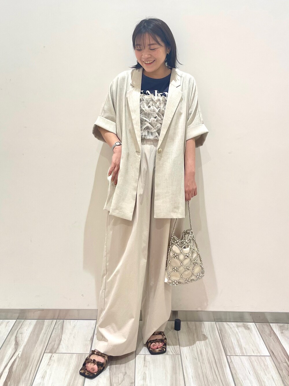 nanamiのテーラードジャケット「【接触冷感・洗える】リネンライクドルマンハーフスリーブジャケット【セットアップ対応】」を使ったコーディネート