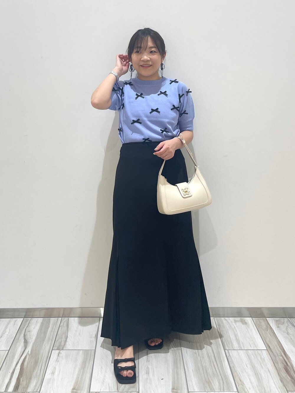 リボンニットとプリーツ切り替えマーメイドスカートで女っぽコーデ♡ デートコーデにもぴったり!!