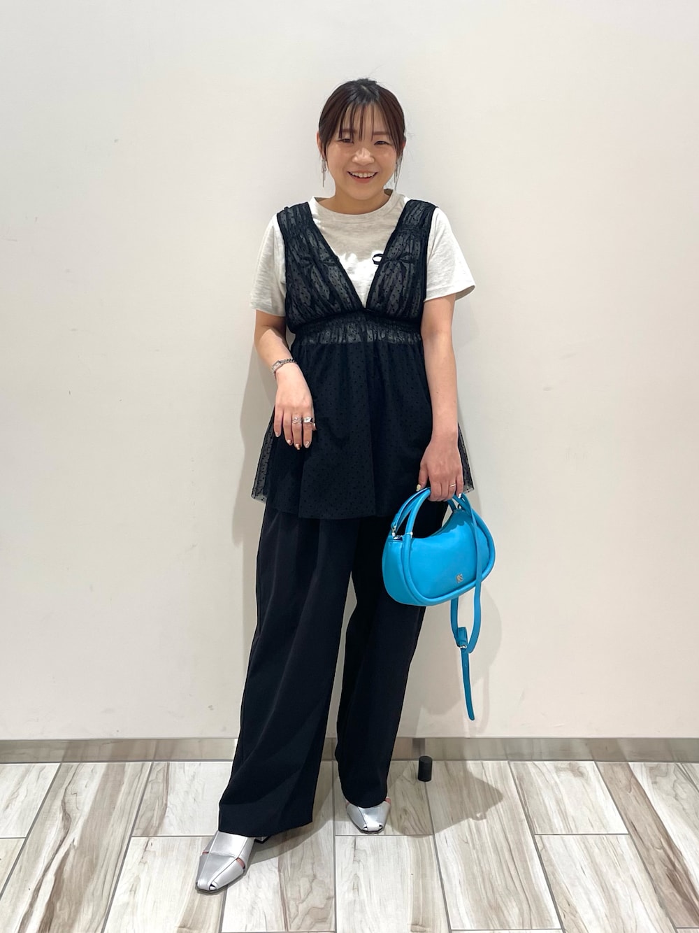Tシャツをインナーで合わせて大人カジュアルコーデです😊 足元はシルバー、バッグは差し色でブルーのバッグを✨ 夏らしい爽やかなコーデを意識しました✨