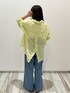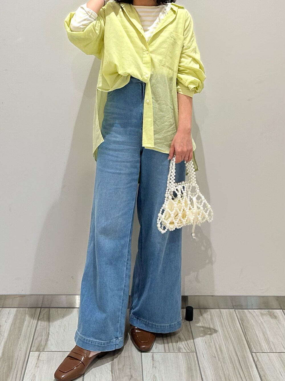 イエローの綿ボイルシャツにワイドデニムで爽やかなコーデに✨ インナーはボーダーにして色もイエロー系で揃えてみました😊