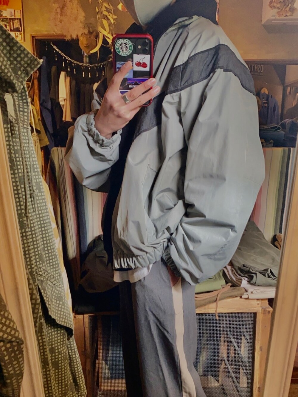 コーディネートのポイント 全体をシンプルにまとめた古着mix このナイロンジャケットが可愛い🤤 インスタのいいねフォローもよろしく🙏🙌