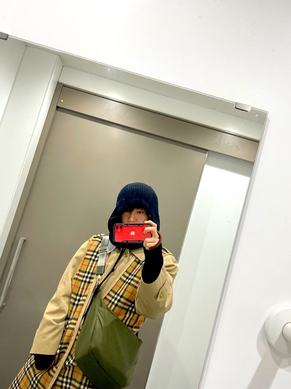 ライナーは外に着けてもええねん。 バラクラバがここ最近になってまたマイブームになっている。 ライナーを外して外に着ることで違和感を 中のカーディガンとバラクラバで先端を黒統一 ガチャガチャしてるからバックは無地のカーキでなんとなく 死ぬほど寒かった