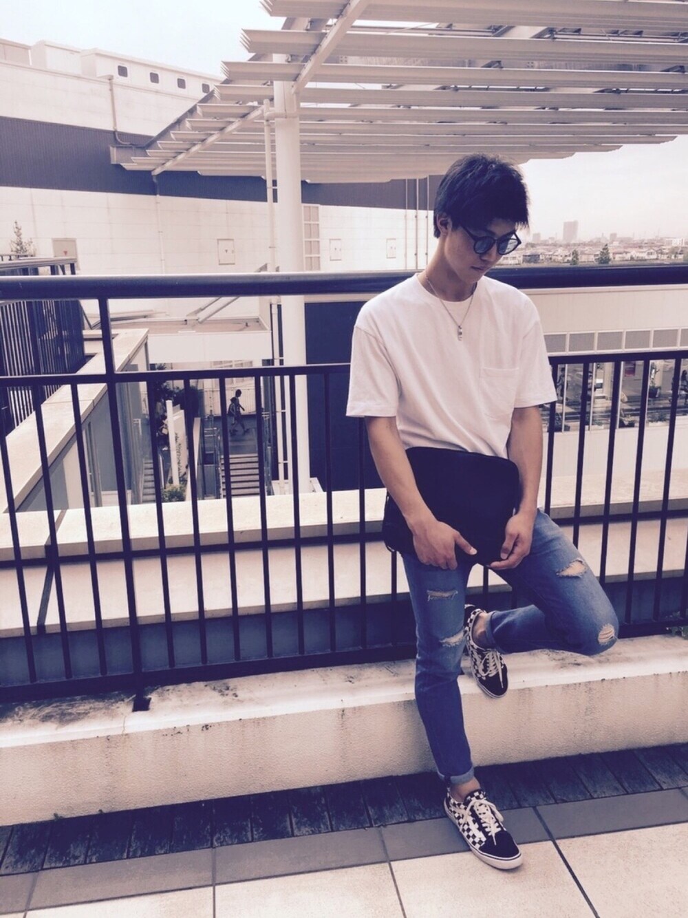 ほんとは2つしかないダメージデニムの穴を2つ自分で開けてみました!バンズのチェッカーは相変わらずお気に入りです^_^