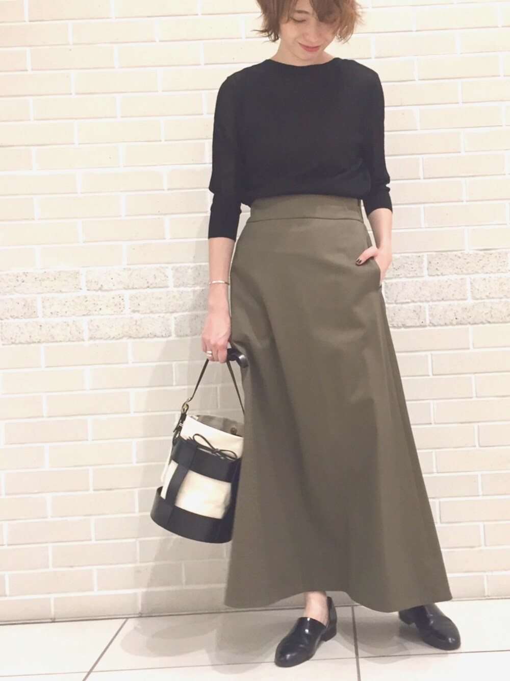 今年あったら大活躍間違いなし! パリッとしっかりシルエットのロングスカートです。 シンプルなコーディネートですが とっても可愛い、、、!個人的にツボです、、、!