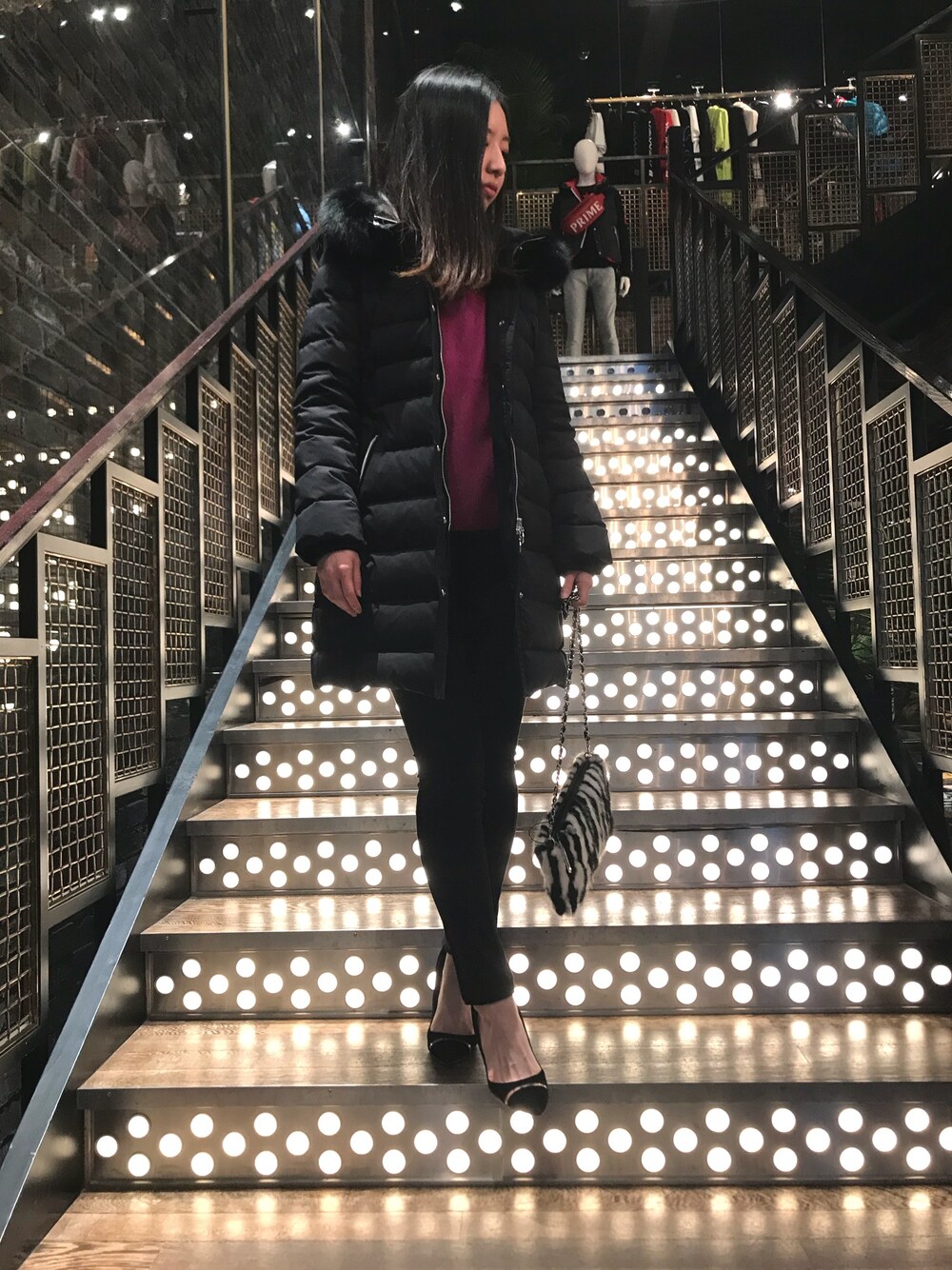 ayk,のショルダーバッグ「【LOVELESS】モノトーンミンクストライプ2WAYファーショルダーバッグ」を使ったコーディネート