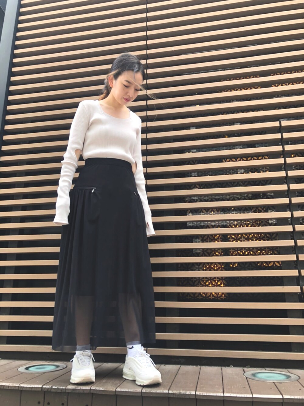 モノトーンのコーディネートです🎵 スカートは、透け感があるので柔らかい印象になります!