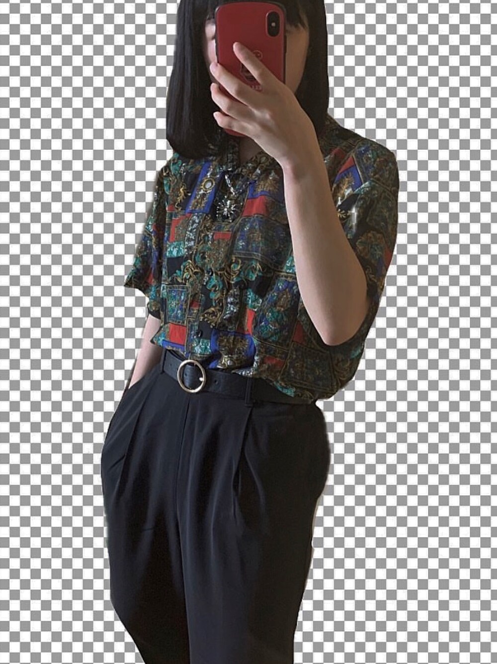 柄シャツ大好きですほんとに。 この柄シャツはファンキーフルーツで買いました。 ネックレスはクモ🕷です。 めちゃくちゃ可愛い GUのパンツ履きすぎです
