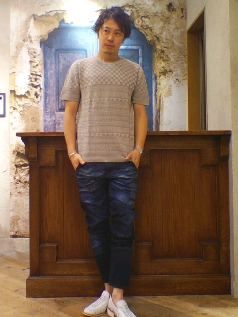 いいね♪ ありがとうございます★ 今回はサマーニットにデニムのコーデです! サマーニットの柄がお気に入りです★ シューズも編み込みのローファータイプでデザイン好きです♪かすたどん。