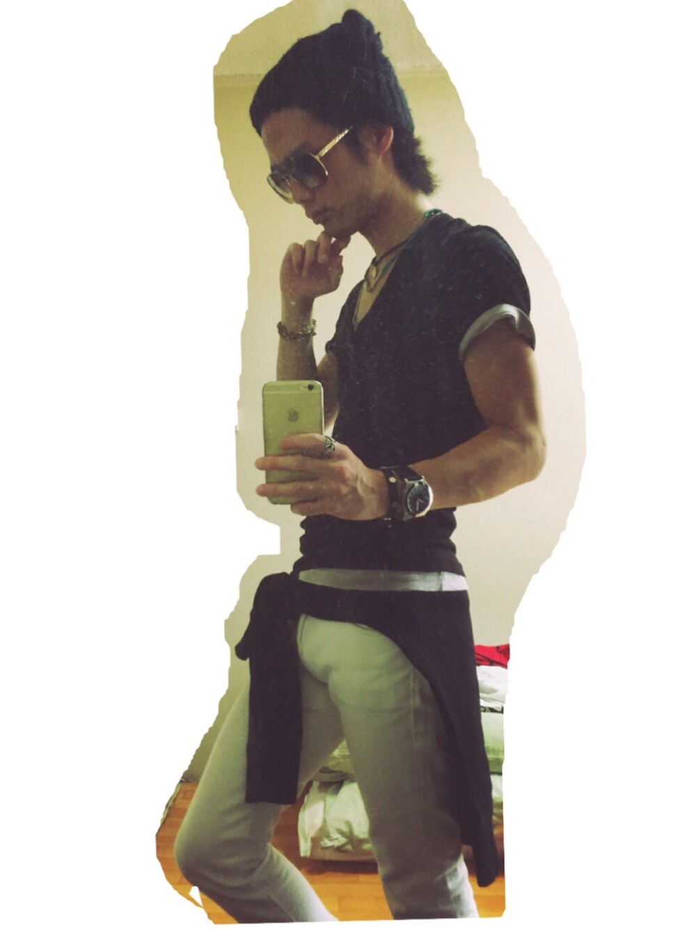 ・knit cap 《beauty & youth》 ¥7,200 ・eye wear 《Michael Kors》 ¥26,800 ・t shirt 《DTE in California》 ¥9,000 ・t shirt《DTE in California》 ¥9,000 ・pants 《UNIQLO》 ¥3,980 ・sweat 《Scotch & Soda》 ¥9,800 ・watch 《COACH》 ¥73,000 ・bracelet 《marc by marc jacobs》 ¥12,800