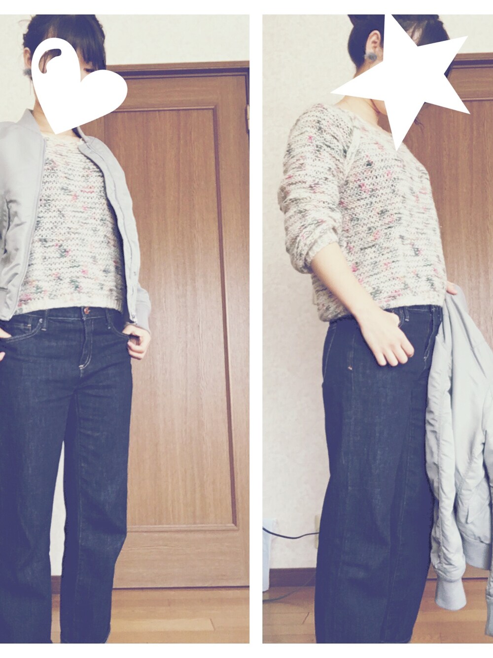 UNIQLOのMA-1、ずっと買おうか迷っていたけど買いました😊 これで秋もデニムが履ける! これまで秋の羽織りと言うとデニムジャケットしか持っていなかったので、デニムonデニムになってしまいデニムが履けませんでした。 デニムonデニムを着こなせるほどおしゃれではありません。笑 このニットはなんと亡き父が結婚前、母にプレゼントしたものだそうで、わたしが譲り受けました☺️ 形も色合いもかわいく、毎年着てます。 かれこれ…30年物!!!✨