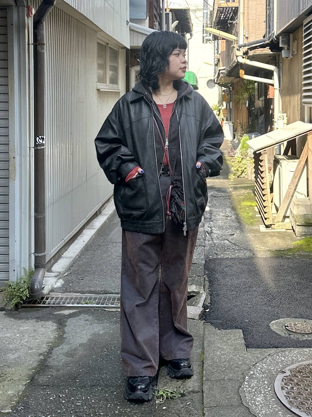 \休日コーデ/ 麻辣湯を食べに行ったので、 麻辣湯意識の赤・黒・茶コーデ🔥 PBLIMのボトムス、後ろがゴムになってるので 楽ちんに履けていっぱい食べれました👍 気になる商品がありましたら ぜひチェックお願いします✨