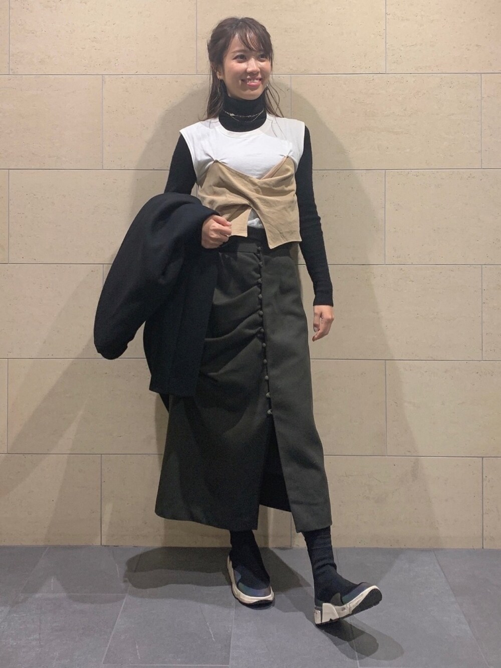 channieのニット/セーター「エクストラファインメリノリブタートルネックセーター(長袖)」を使ったコーディネート