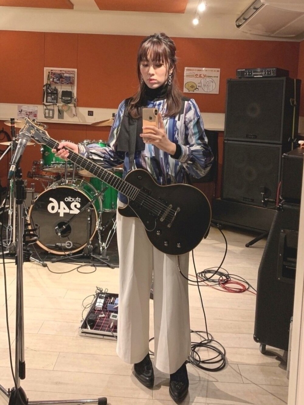 スタジオ前に、ギターと服がなんか合ってたから撮ってみた💙笑 関係ないですが、歴代好きになるアーティストが使用しているギターが大体レスポールで、完全に影響されてシェクターのダイヤモンドシリーズ💎アクティブレスポールギターを使用してます。 いつもボーカルちゃんも可愛い服着てるからいつかセットで写真撮ろう… 早くライブ出来る日が来て欲しい〜