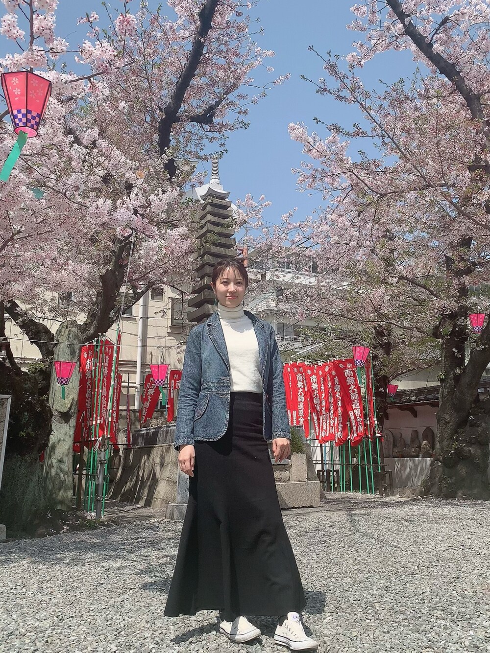 家の裏のお寺が、桜満開だったので記念に一枚撮って貰いました🌸✨