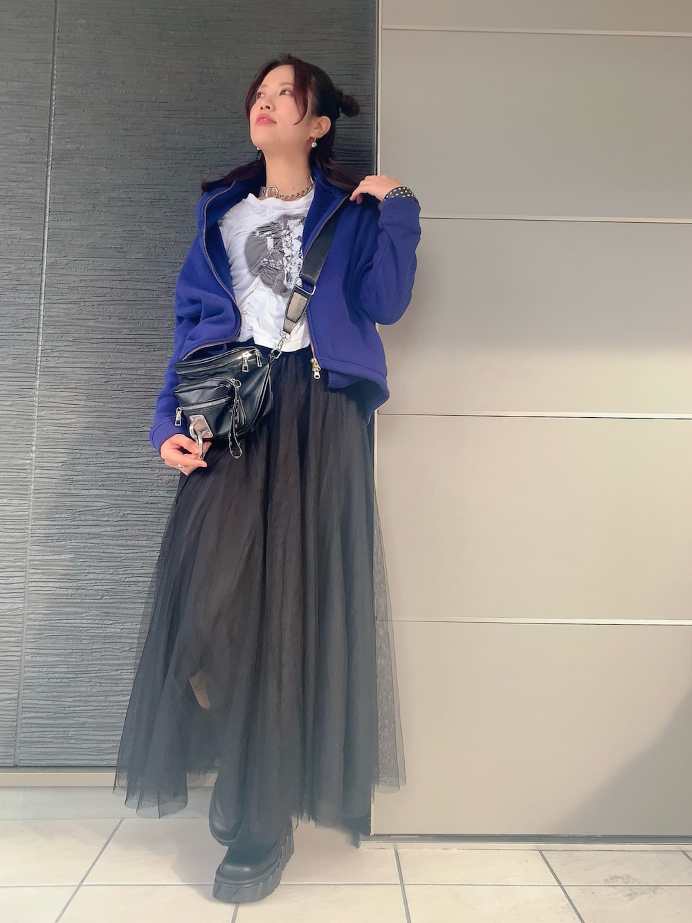 今日は比較的あったかいのでパーカーコーデ💙 夜はこの上にダウンを着る予定…🖤