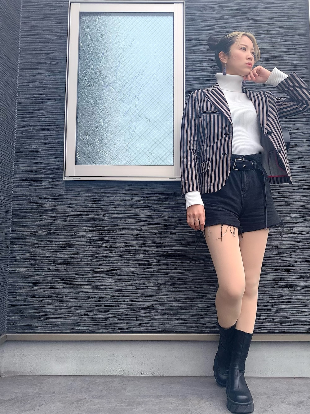 今日はフェスでフライヤー配り係💜 きっちり感とパンク感を出すためにはパンチの効いたジャケットスタイルがちょうどいいですね✨