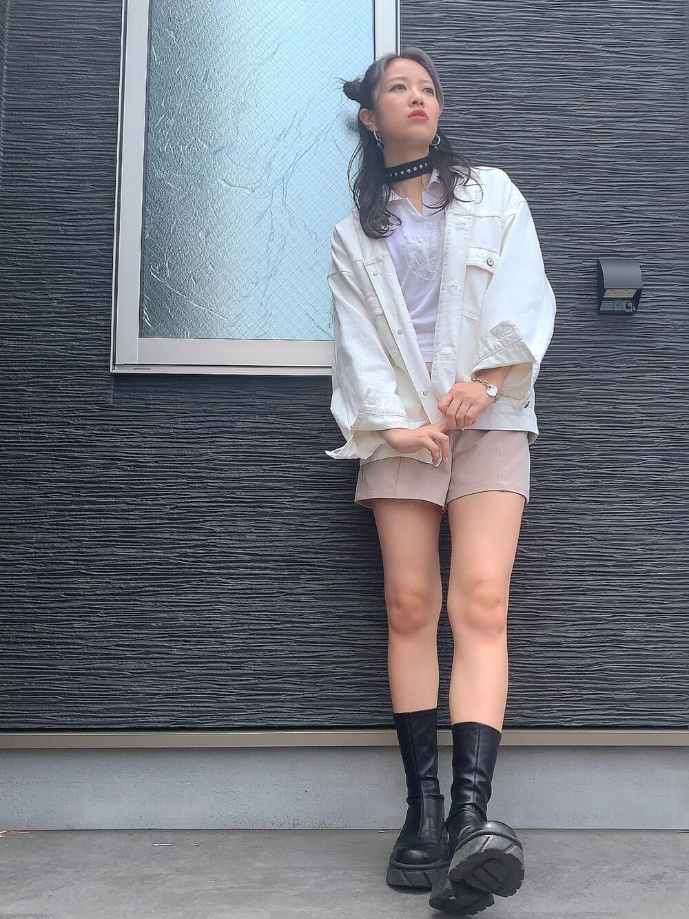 今日はホワイト〜ベージュのワントーンコーデ✨ 締め色で黒は必須🖤