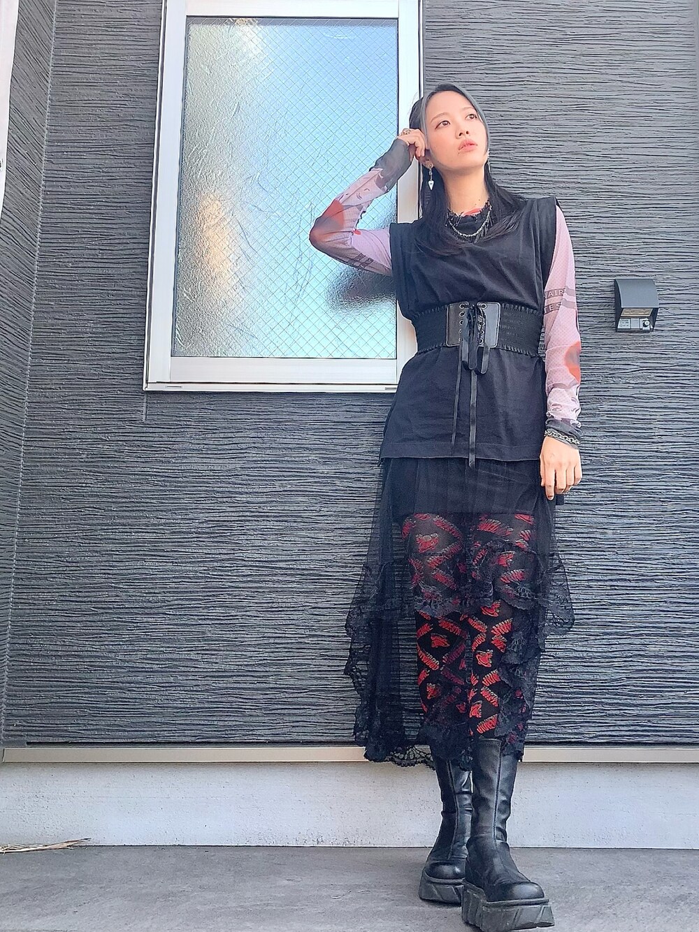 Vivinneのド派手タイツに負けない総柄トップスで、対抗してみました(?)❤️🖤