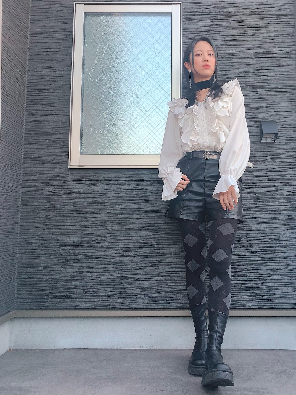 今日はあったかかったので外で撮りました⭐️ このトップス、色んなコメントを貰うんだけど今日貰ったコメントは"貴族"でした笑