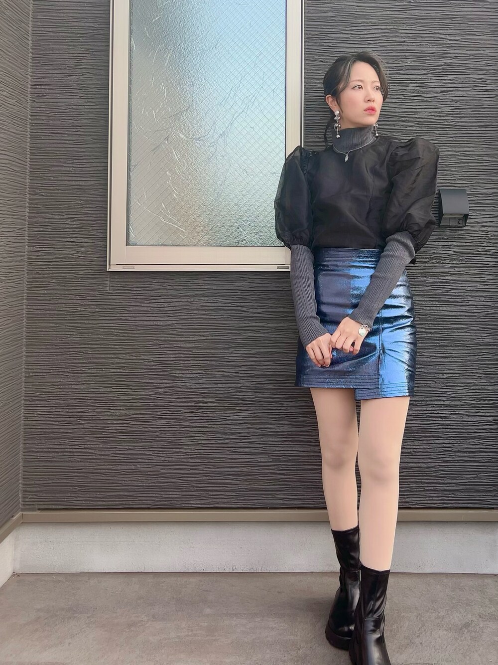 今年買ったものを組み合わせてみたら良い感じに💙 ビッグパフスリーブのシースルートップス、まさかの課金さんと色違いで運命感じました💘笑