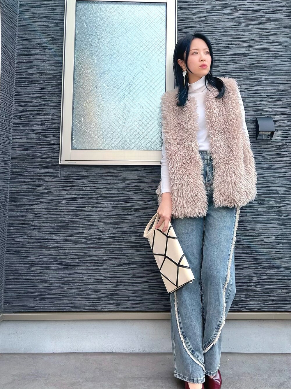 大人っぽく春コーデ まだ夜は冷えるのでふわふわニットベスト☘️
