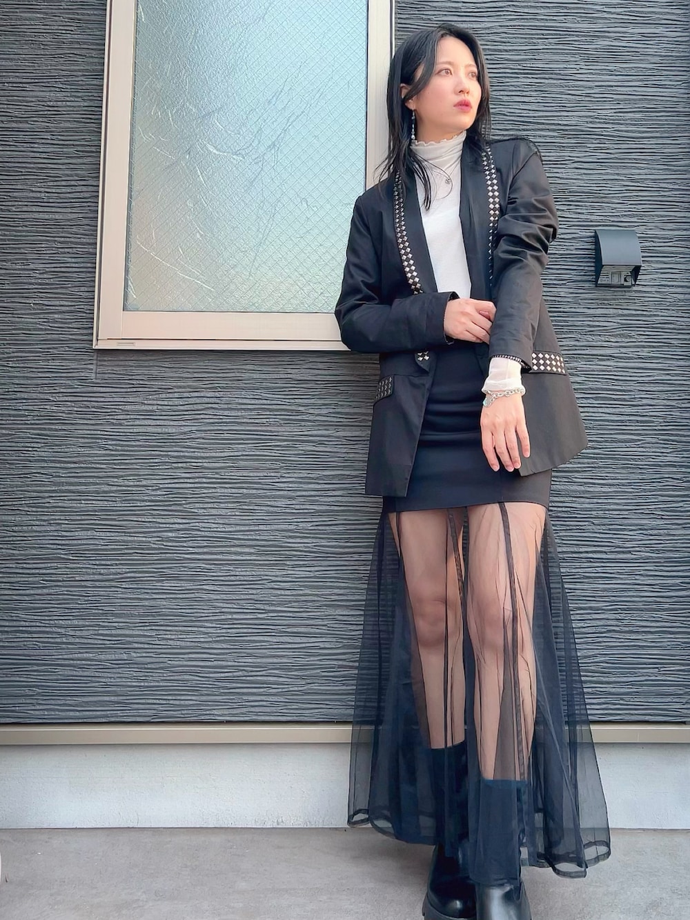 モノトーン綺麗めプチパンクコーデが好きです🖤(情報過多