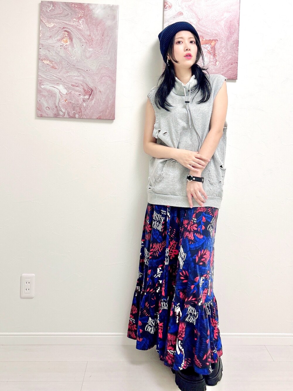 生地が厚くノースリーブのトップスは 二週間くらいしか着るチャンスが無い笑 最近GETしたヒステリックグラマーの総柄スカートがお気に入り💙❤️