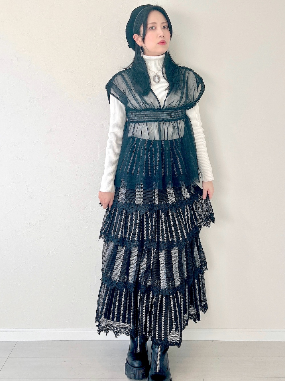 とにかくこのカメオネックレスがお気に入りで、ゴシックめにコーデしてみました🖤
