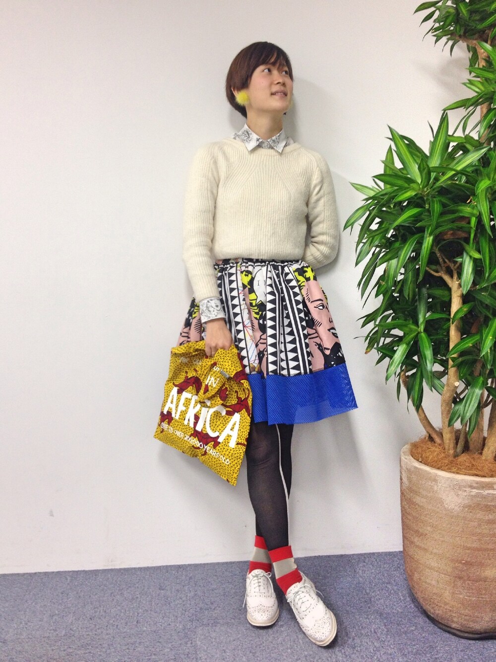 アメコミスカートで可愛らしく決めてみました❗ 柄物たくさん。アフリカントートはクラッチバッグ風にくしゃり持ちで。 買ったばっかりのチャーチは、最近は毎日はいて馴染ませております‼早く私の足と同化してほしいです。 あ