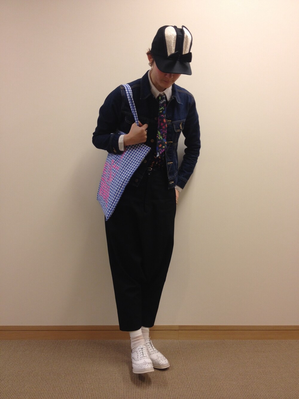 バニーキャップをメインにしたおちゃめなスタイリング♪ 足元は、やっぱりお気に入りのチャーチで決めました〜! あったかくなってきたので、スッキリとホワイトカラー