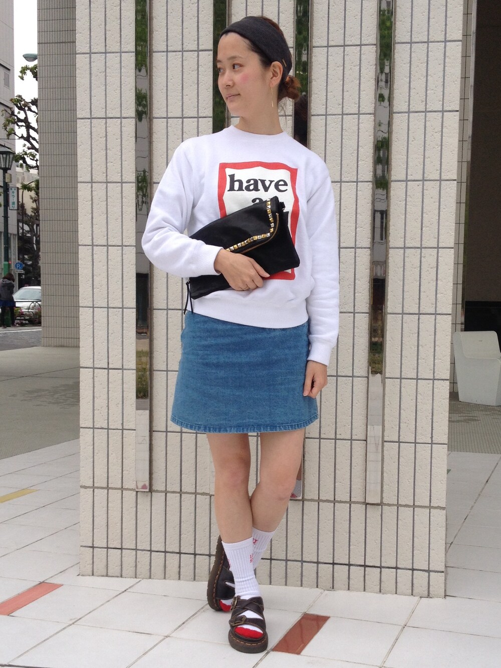 「have a good time」のスウェットをメインに♪ Dr.Martensのサンダルにソックスを合わせてカジュアルスタイル!