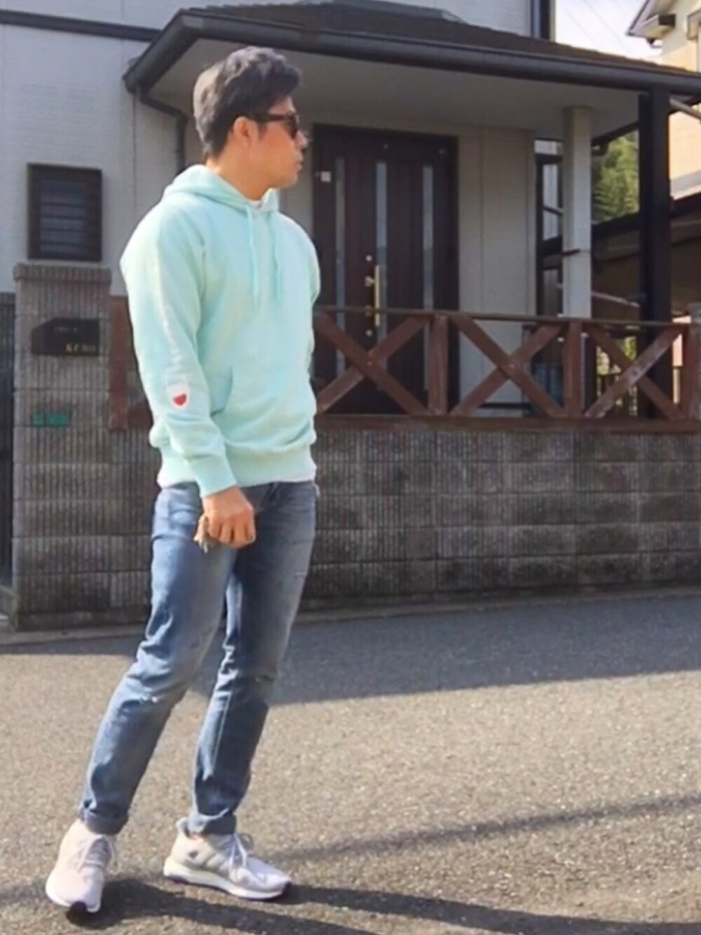 春っぽいカラーのチャンピオンパーカー☺️☘️ 袖ロゴもお気に入りです😆