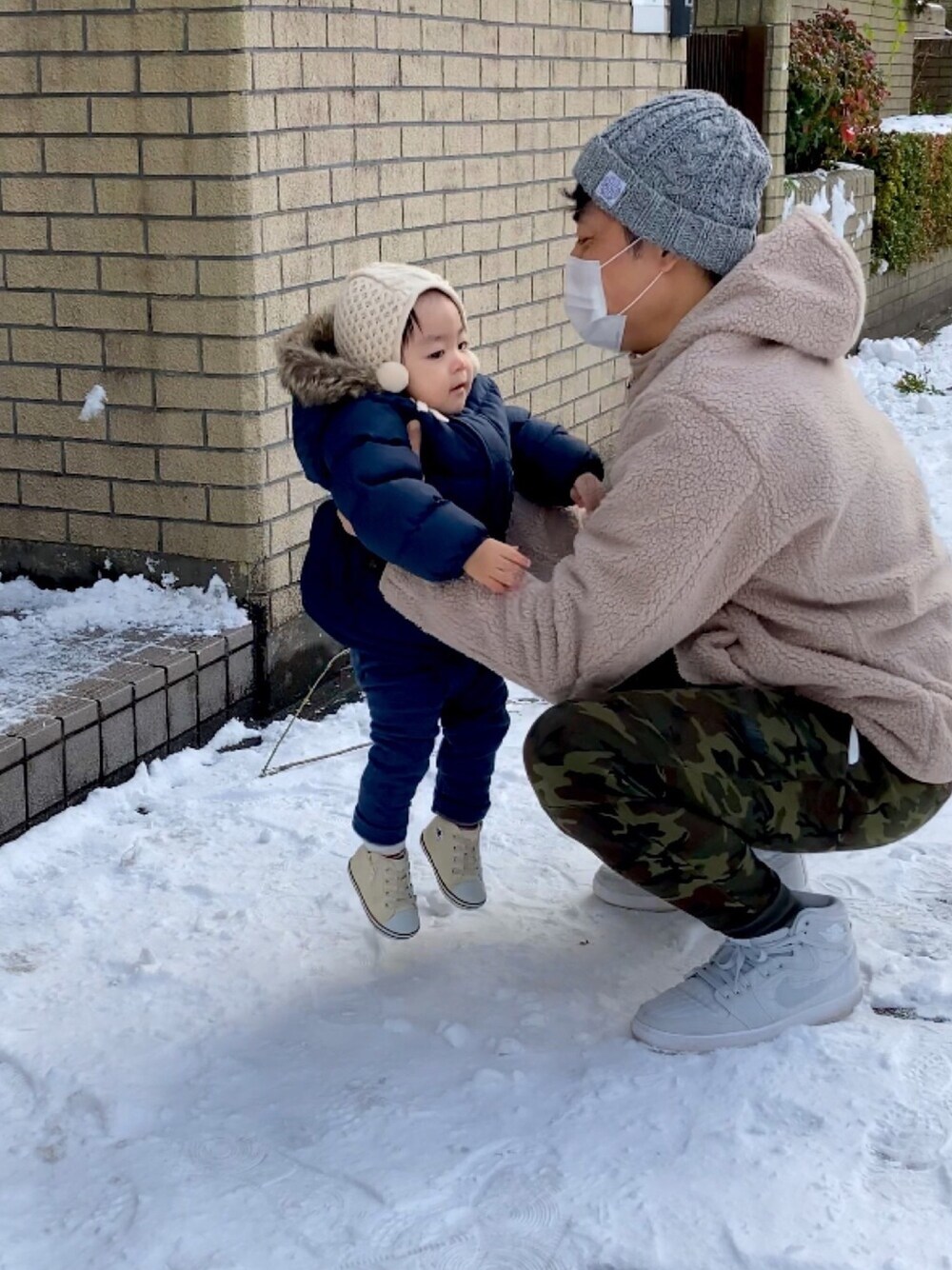 雪の日⛄️ 初めての雪を体験👶 しかも、初めて靴を履いて歩いてた👟