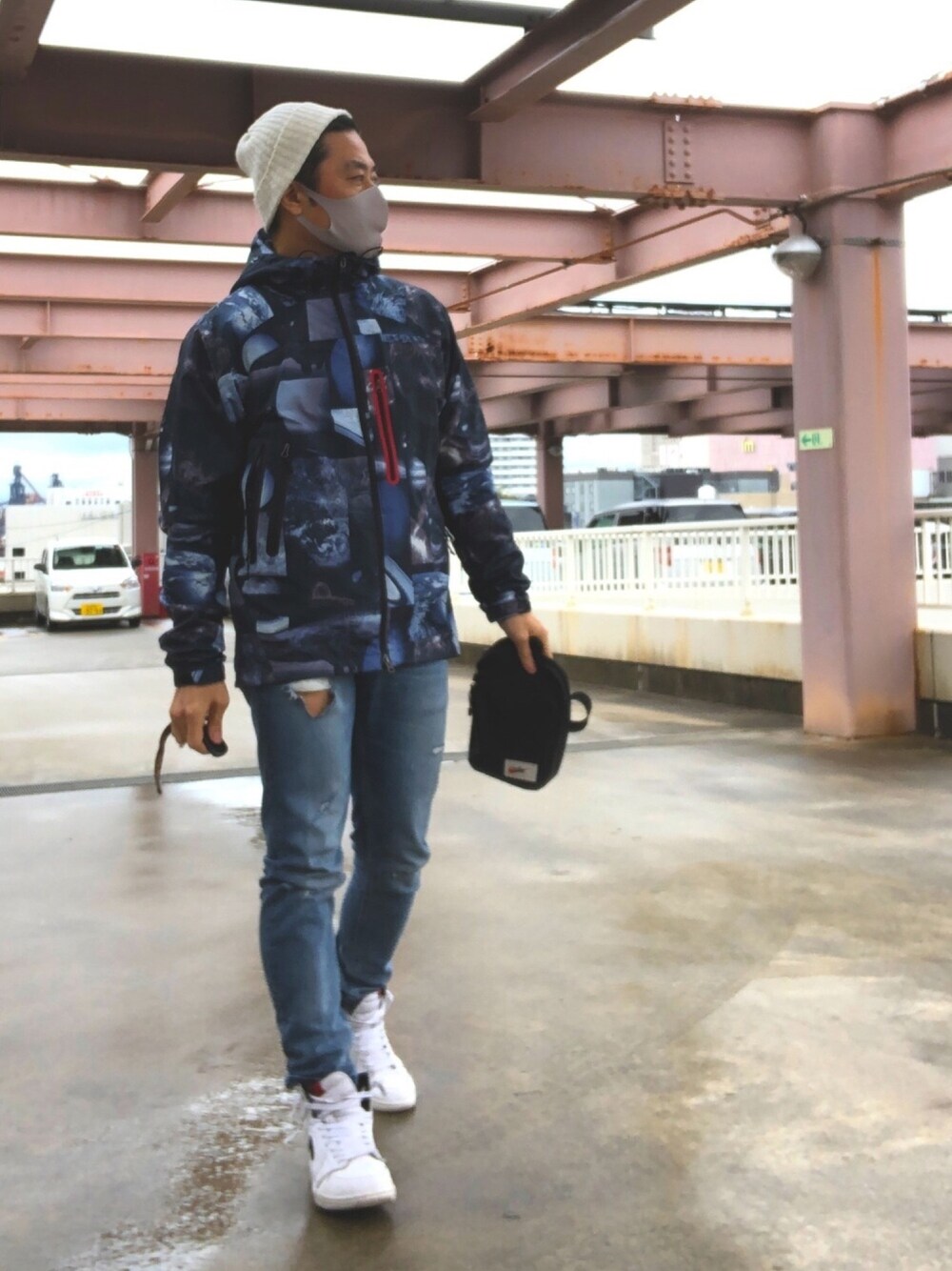 雨の日はナイロンジャケットにAJ1👟 今日の雨で桜が散るかな🌸