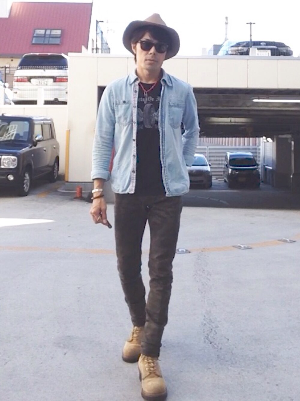 ハットコーデ第2弾です(o^^o) チェックシャツ感謝祭まで チェックシャツ着れない雰囲気に、勝手になっちゃった(^^;; って事で デニムシャツにカモフラパンツ フライホイールのTシャツ ネイティヴ系のネックレスをチョイス(-_^) 中古で折りたたみレイバン手に入れました(^o^)/ かけやすくていいねぇ♪ いつも見てくれてありがとです(#^.^#)