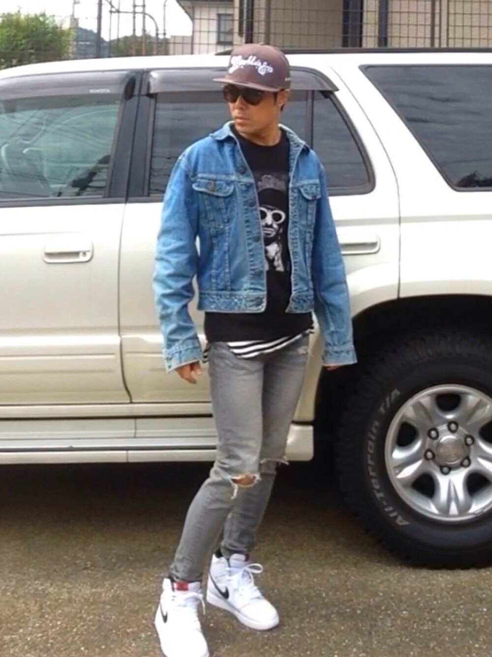 やっとデニムジャケットが着れる気温☺️🎶 古着屋で良いクタッと具合のデニムジャケットを見つけたから ちょっとずつ加工してやろうと思ってます😁 Yラインっぽく トップスぶかっと パンツはタイトに✨ キャップ無しでも良かったんだけど ちょっとセットするの面倒くて😅💦 沢山の方にコーデを見てもらえて嬉しいです😍 あざまーす💕