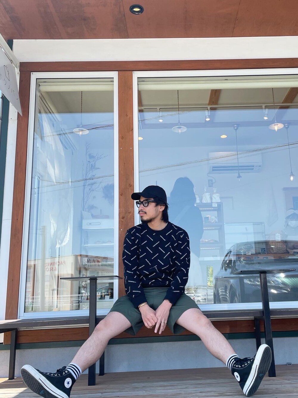 26℃の鹿児島💦 ハーフパンツの季節到来🩳 個人的に ハーフパンツに ハイカットスニーカー 長袖トップスコーデが お気に入り❤️