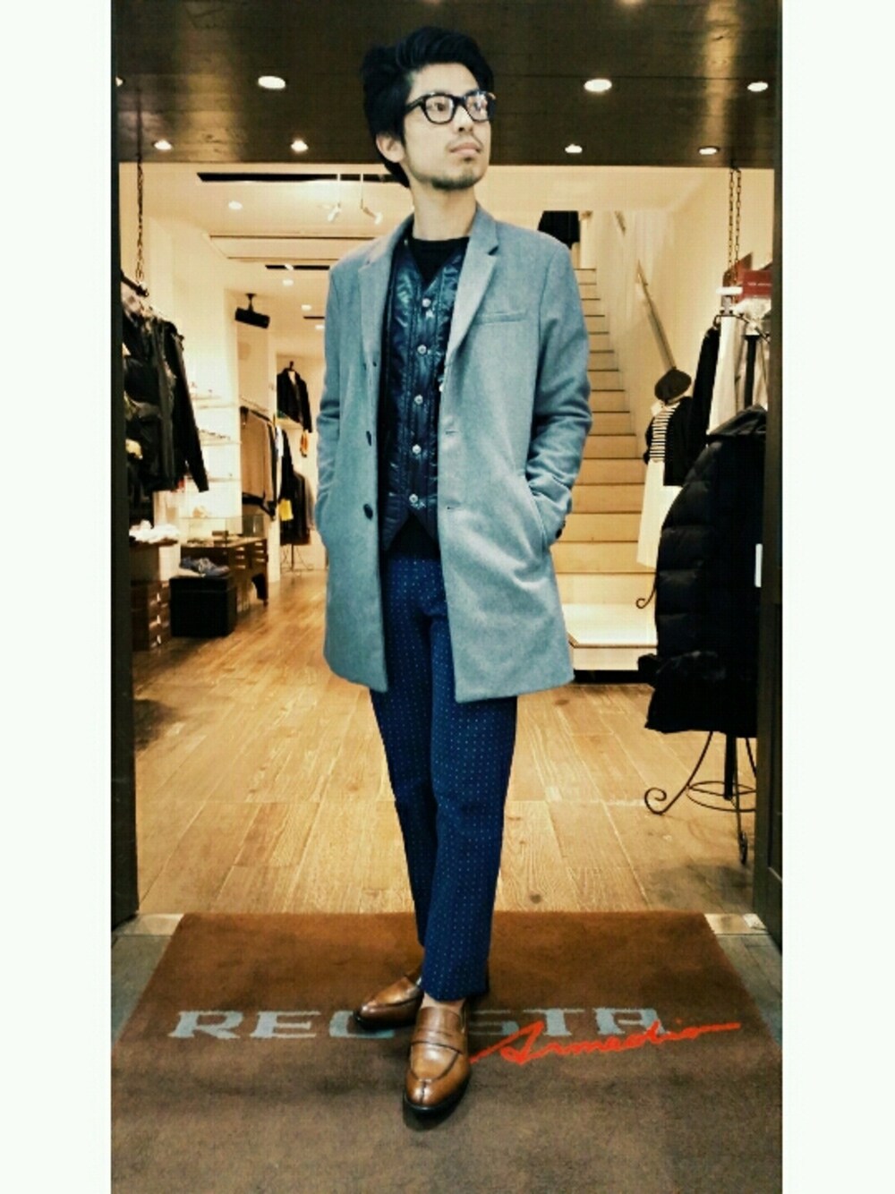 あっという間にクリスマスシーズン突入!! 街にカップルがたくさんで、カップルの間に入りたくなるおじさん心境…(笑) そんなおじさんでも楽しめるクリスマスパーティーを今年も開催します! 今日もスタッフと何を着て参加するかニヤニヤ やっぱ今年はインナーダウンは外せない むしろ着たい(笑) でも、パンツの短め丈も捨てられない そんなコーデを(笑)