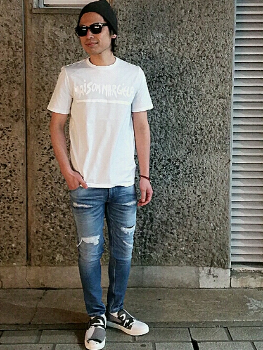 やっぱり今年は白ではないでしょうか⤴ ダメージデニムにマルジェラのTシャツ 鉄板にカッコイイ 今年のシャツ選びの1つにオススメ