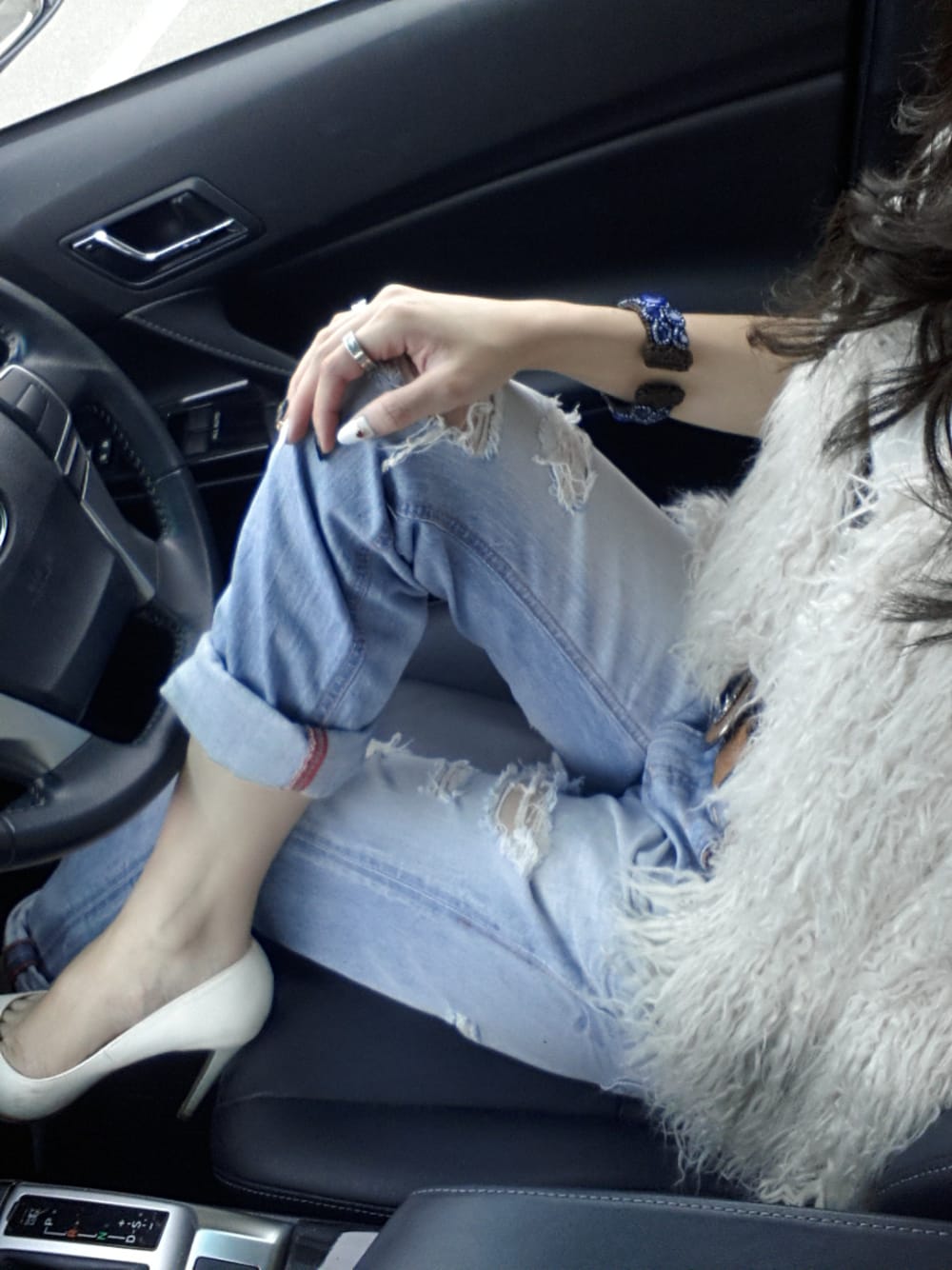 秋仕様~\(^^)/ フェイクファーのベストの下はノースリーブで 秋を先取り☆ ボーイズデニムとパンプスでカジュアル×綺麗めに。 インナー、BAG、パンプスは白で統一(^_^)