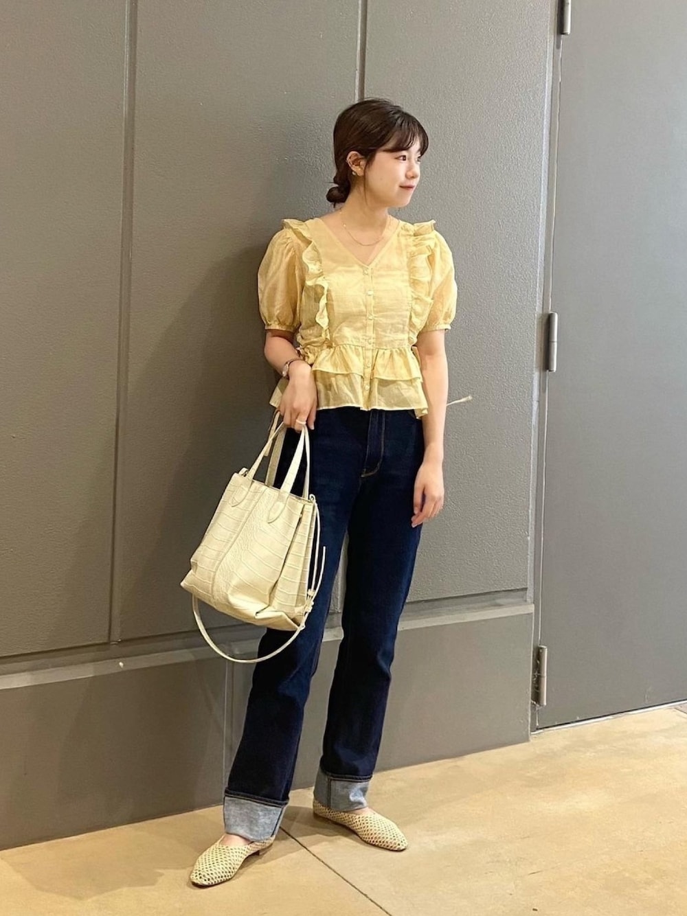 𝐑𝐈𝐎(FREE'S MART新宿ルミネエスト)のシャツ/ブラウス「◆前後2Wayシアー肩フリル半袖ブラウス」を使ったコーディネート