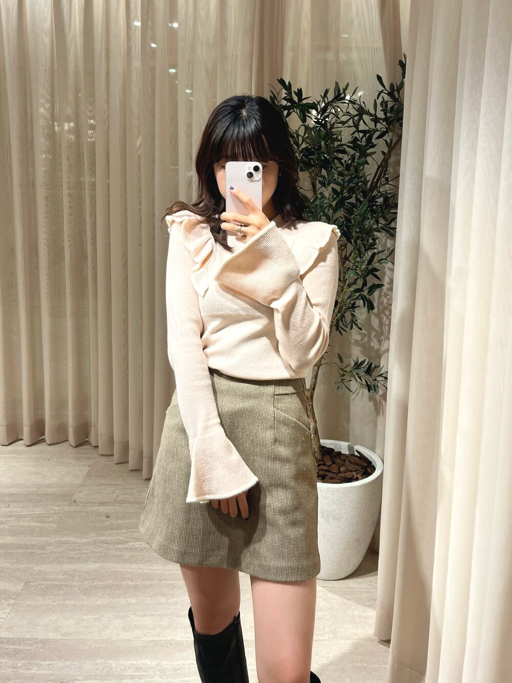 𝐑𝐈𝐎(FREE'S MART新宿ルミネエスト)のニット/セーター「◆【WEB限定】トリミング畦フリルコンパクトニット」を使ったコーディネート