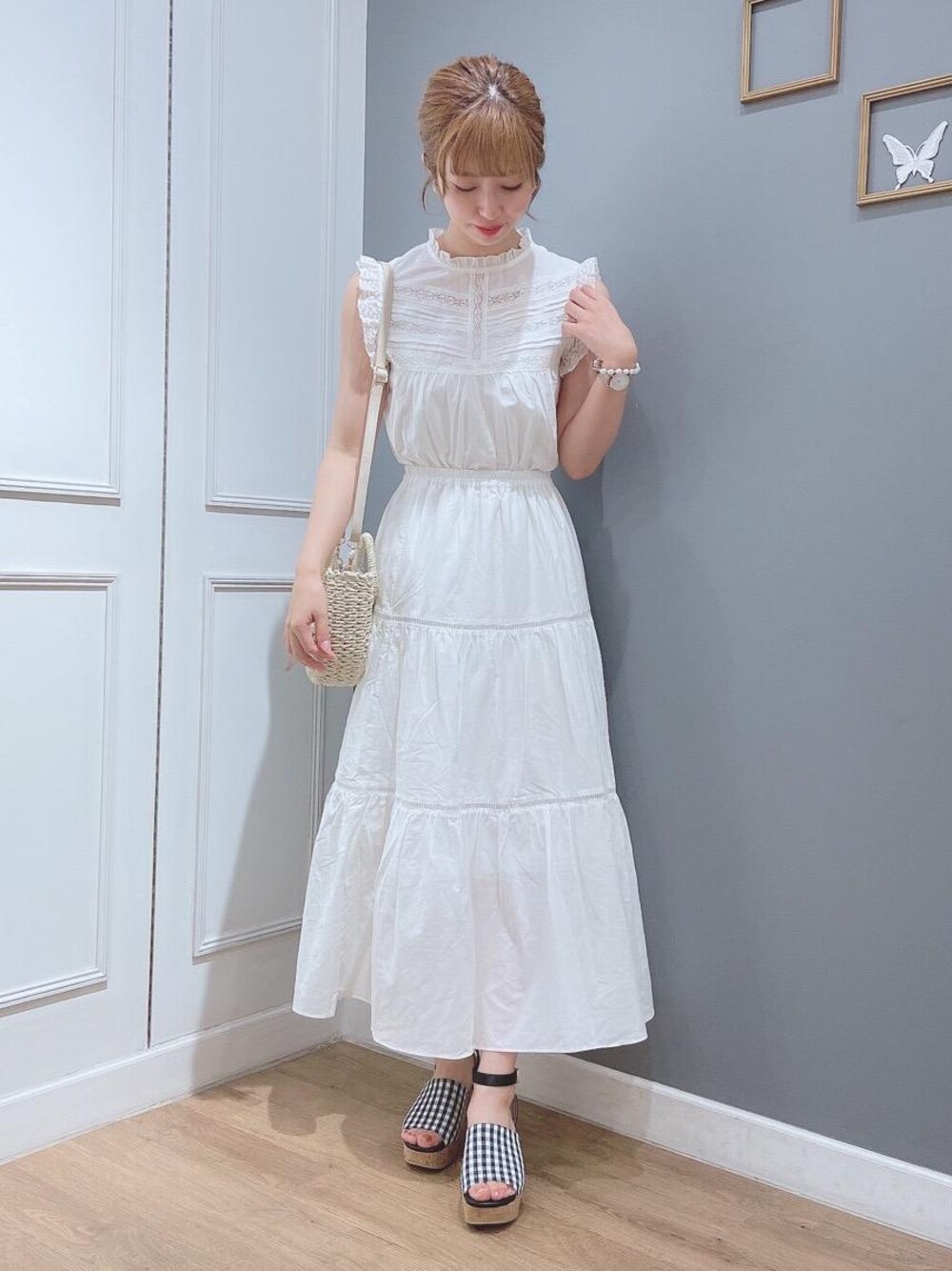 るんのサンダル「アンクルリボンsetサンダル」を使ったコーディネート