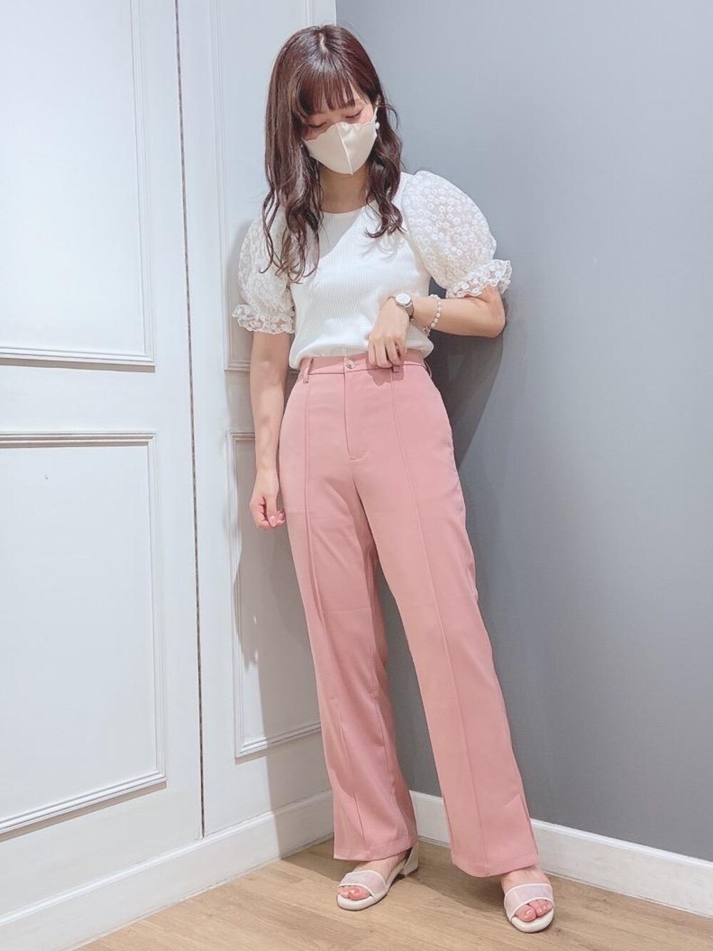 税込¥5,000以内で買えちゃうお買い得コーデ✨(7/11までのメンバーズセールで10%OFF対象の方)お袖がかわいい大人気のトップスにぴったりしすぎないパンツを合わせたコーデ♫