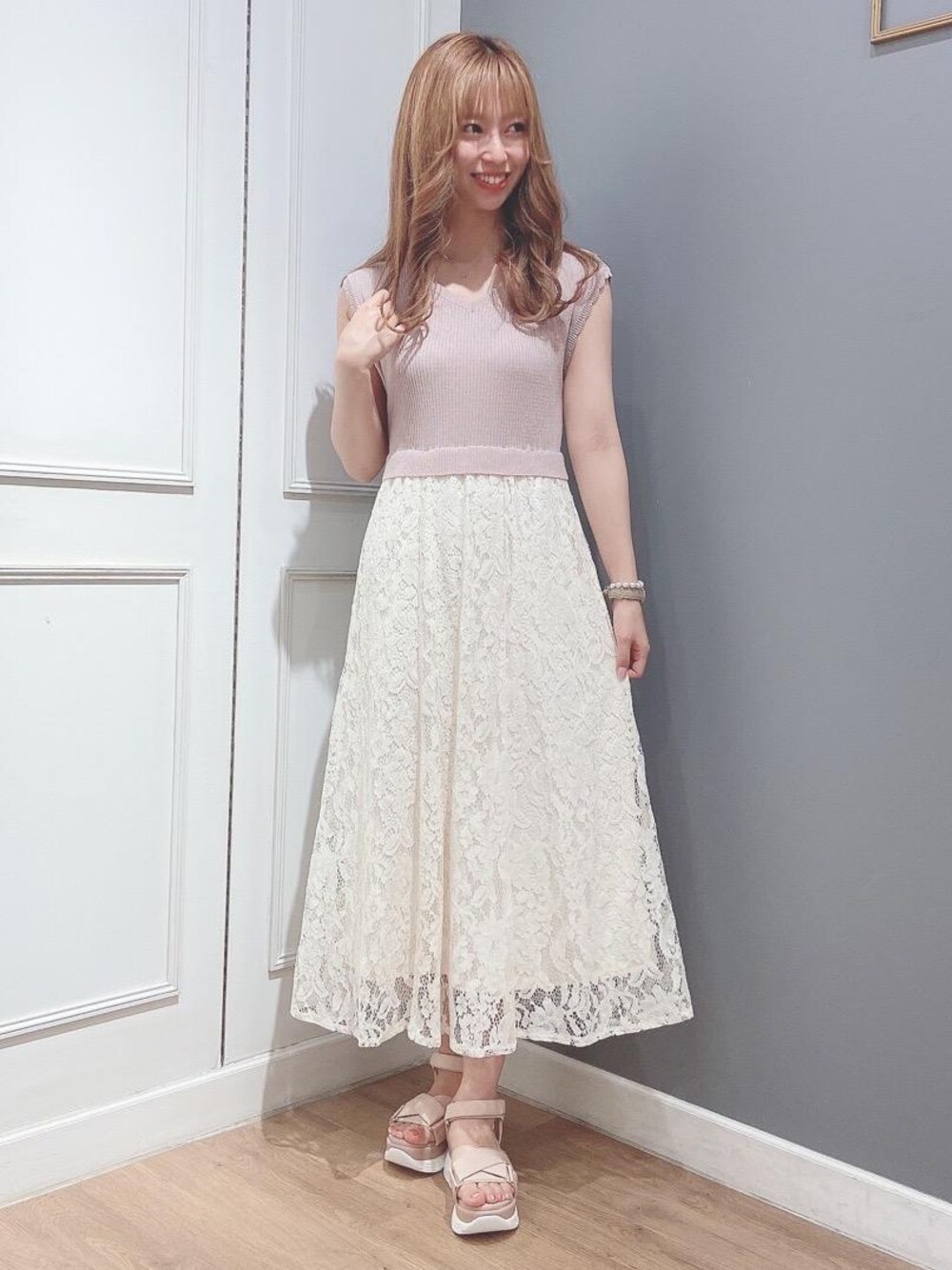 るんのワンピース「ニットドッキングレースワンピ」を使ったコーディネート